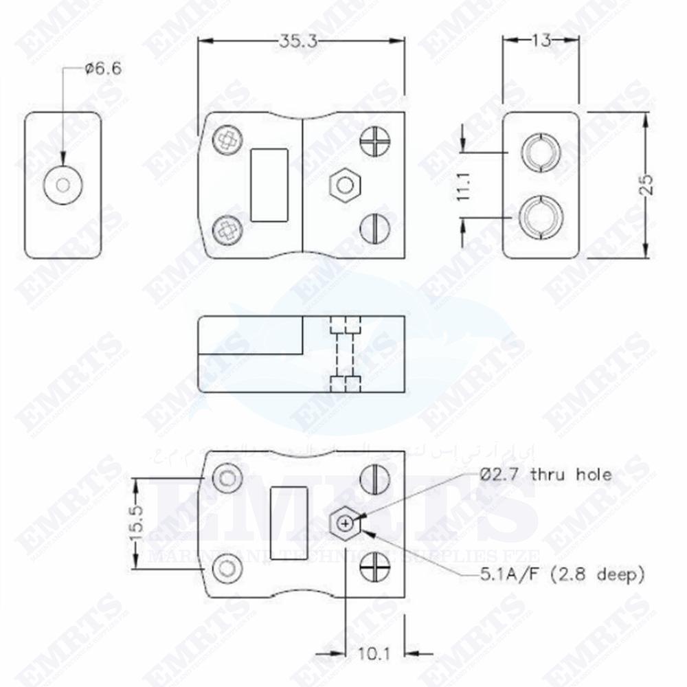Accepts standard round plug pins, contacts are polarised to prevent incorrect connection.