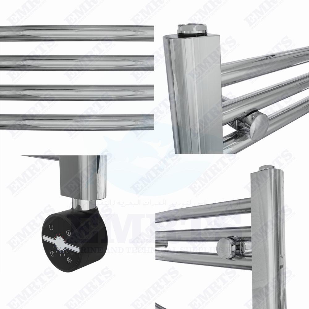 Fjord 600 x 500mm Curved Chrome Thermostatic Touch Control Electric Heated Towel Rail