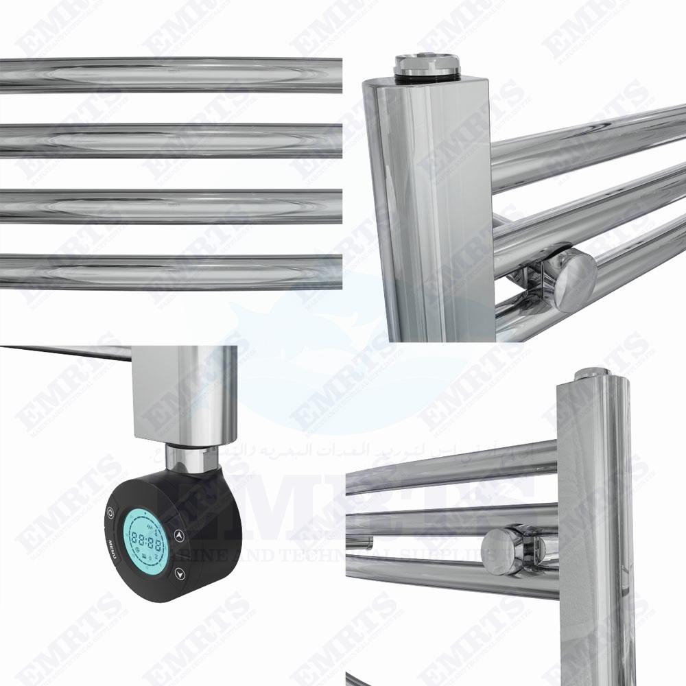 Fjord 600 x 600mm Curved Chrome Thermostatic Touch Control Electric Heated Towel Rail