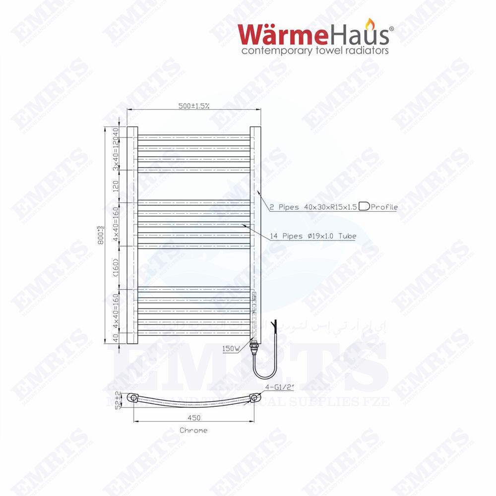 EMRTS Premium Towel Dryer Radiator Chrome EMRTS-BL-00625